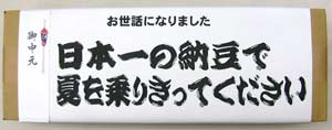 お中元ギフト梱包天然わら納豆(大)2本セット&2倍おいしい醤油 価格: 5,200円 レビュー評価:0.0 レビュー数:0 只今お中元の予約受付中!! 天然わら納豆(大)300g2本と2倍おいしい醤油500ml 1本のセットです。こんにちは!有機家店長のクマクマです。この天然わら納豆を受け取ったお方は先ず・・・・・・・・・・「なんだ?これは??納豆か??」と全長約46センチのその巨大さにビックリすることでしょう(^^ゞそして・・・・・・・「おーい おかあさん ちょっと見てみなさい」ご夫婦ともども大笑い・・なさるかもしれません。とにかく召し上がる前に先ずビックリ・・そして「夏を乗り切ってください」・・か夏の食欲のないときには納豆はピッタリだな?気使いがうれしいね・・と喜んでいただけるかもしれません。やがて食事時になり Supported by 楽天ウェブサービス |